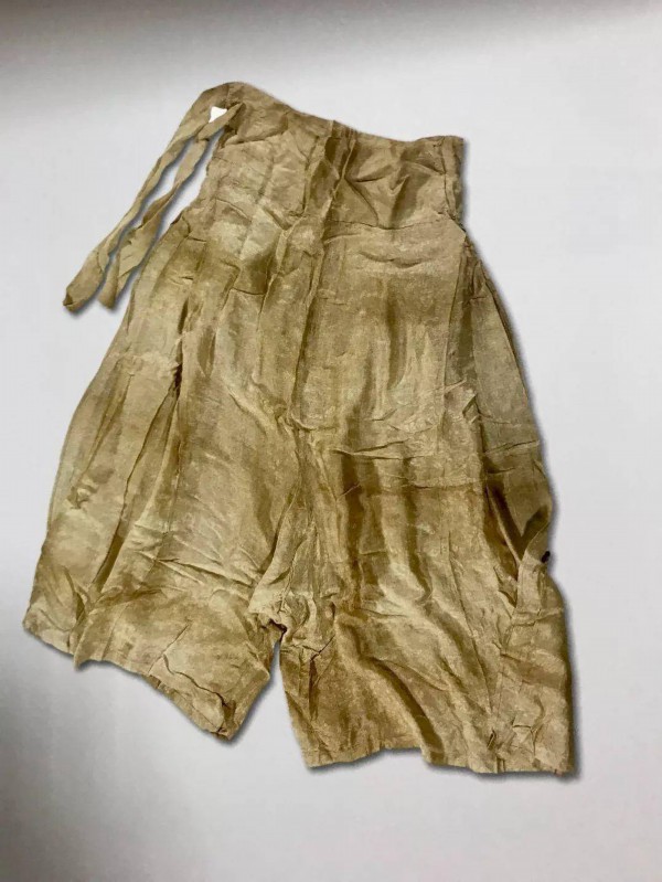 (合裆,大裤脚,裤脚两侧打褶,腰侧系带)