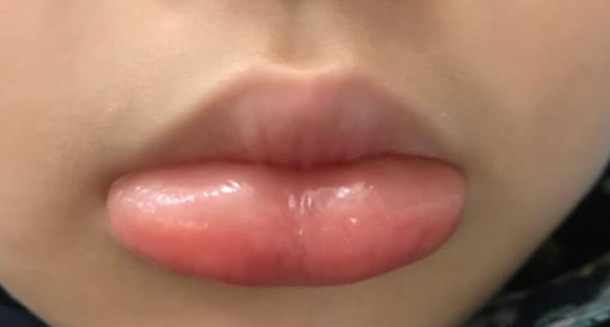 而等冰淇淋自行融化脱落后后,男童发现,自己的嘴唇居然肿了起来,且粘连无法张开。