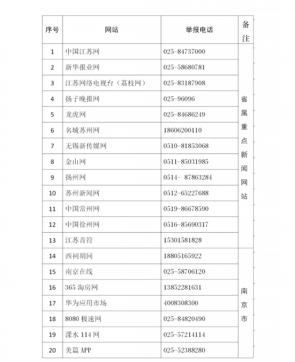 附:江苏省开通互联网违法和有害不良信息举报受理方式