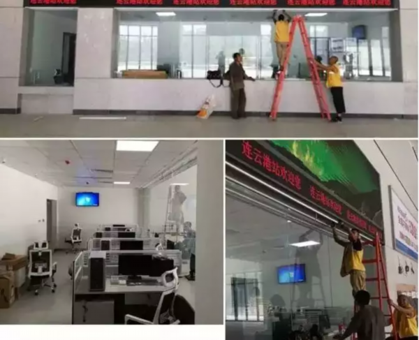 在售票大厅里,售票窗口前面已经安装了6个扩音器。在玻璃幕墙前面的四台液晶显示器,已经可以正常显示一些票务信息。售票窗口的显示大屏也已经调试到位,将来可以显示一些票源信息,包括到达站点、一等票、二等票的张数等等,另外出站口的验票闸机也已经安装到位。工作人员介绍说,目前连云港火车站已经进入了联调联试阶段。