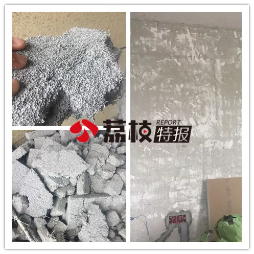 在另外一户业主詹先生的家中,装修也已经开始了,但记者发现用石膏基无机保温砂浆做成的保温层还未铲除,墙面内部大约有一层两公分厚的砂石层,用钥匙就可以随意打开一个缺口。詹先生说自己之所以还未铲除保温层,是因为在等开发商的处理结果。