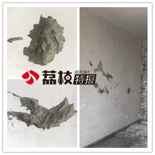 南京市浦口区海科新寓万福园是个拆迁安置房小区,本月初刚刚交付,但因为使用了一种名为石膏基无机保温砂浆的材料,新房墙面变得十分脆弱,不少业主反映墙面一碰就碎,这也引起不少业主的疑虑。事情发生后,多家媒体对此事进行了报道,开发商回应疑似出问题的是一种节能材料,会找第三方检测公司重新进行取样检测。
