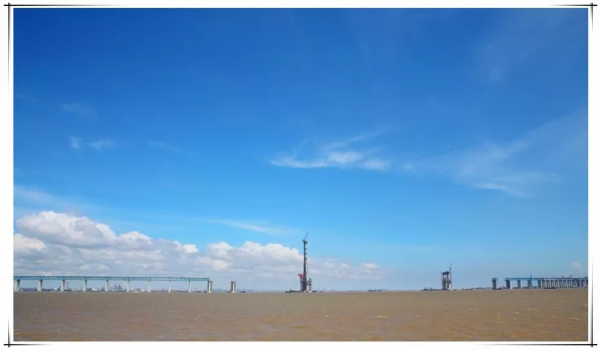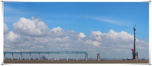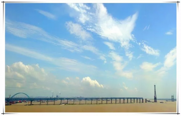 8月18日,南通迎来蓝天白云的好天气,记者首次在江中心拍摄全桥画面,晴好天气下的沪通长江大桥身姿靓丽。