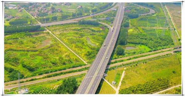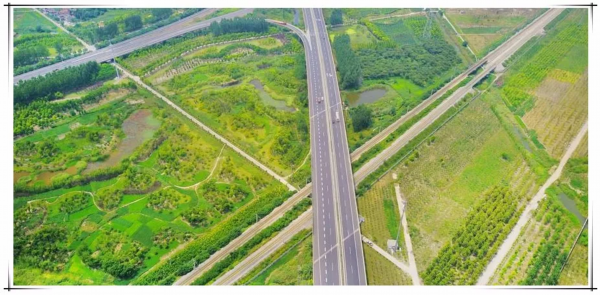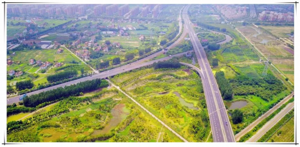 8月8日航拍的陈桥收费站高速路段,陈桥互通立交绿化工程占地面积400亩,经过多年的建设,已成为环绕主城区东部与北部的一道绿色生态屏障。