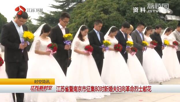 省委宣传部等部门今天联合发布:从即日起,江苏省暨南京市将遴选80对新婚夫妇,于今年9月30日烈士纪念日当天在南京雨花台烈士陵园向雨花英烈献花。本次活动报名方式采取组织推荐和个人自愿相结合。凡在南京市2017年9月30日后登记领取结婚证的新婚夫妇均可报名参加,并在南京市民政局、雨花台烈士陵园和各区婚姻登记处免费领取报名表格,也可通过微信、热线电话等方式报名。今年新婚夫妇向革命烈士献花活动将继续在全省各设区市、县(市)全面开展。省内其他地区有意愿参加活动的新婚夫妇,可向所在地宣传部门咨询报名。(江苏广电融媒体新闻中心记者/刘承武 曹鹏)