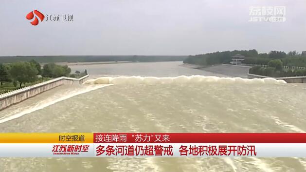 受接连多次的降雨及上游泄洪影响,我省新沂河、洪泽湖等周边部分河道水位仍超警戒线。今天起,受台风"苏力"外围影响,我省大部地区又出现降雨天气,各地积极有序展开防汛工作。