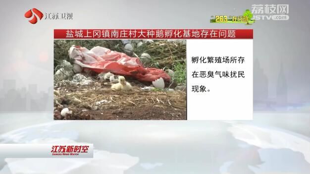 在建湖上冈镇南庄村大种鹅孵化基地,分布着80多家孵化繁殖户,暗访组走访时发现,养殖户的环境保护意识整体比较薄弱,村庄的河道两旁堆放着孵化的蛋壳、动物的死胎、胎衣,养殖场地蚊虫肆虐、臭气熏天。
