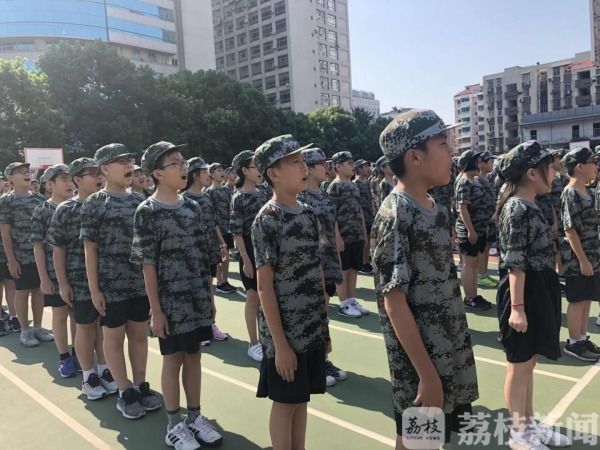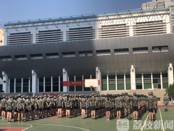 在南京第一中学操场,来自初中部近500名学生穿着统一的迷彩服开始了为期5天的“初中衔接课程”。副校长张雪花介绍,这五天,除了列队训练外,学校还安排了校园文化介绍、学唱校歌、学校奖惩制度、学校大型德育活动、学生个人成长需要的学业和心理准备的相关讲座。同时,还特别印制了一本“学生手册”。“希望学生们能够适应初中的生活,比如说学生手册的学习,要求他们对于遵纪、尊规守纪是有要求的。比单纯的现在去学他们的学业,我觉得应该是效果更好一些,首先要有规,我们再去提到学业的学习。”张校长说。