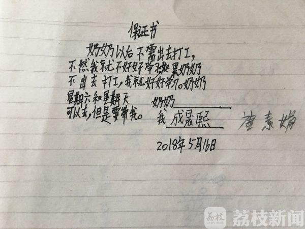 在陈锦华的爱心陪伴下,小晟熙变得阳光开朗了许多。今年5月,他向奶奶提出,需要更多陪伴,奶奶可以在周六、周日外出打零工,并且将他“外带”上,为此,祖孙俩还写下了“保证协议”。在成晟熙的奶奶唐素娟眼中,“陈校长就像神医喜来乐一样的,就是不图名不图利,平常我们不知道他就来看孩子了。在思想上就好像有一种精神支柱,就有了活下去的勇气,就有了向前奔跑的方向。”