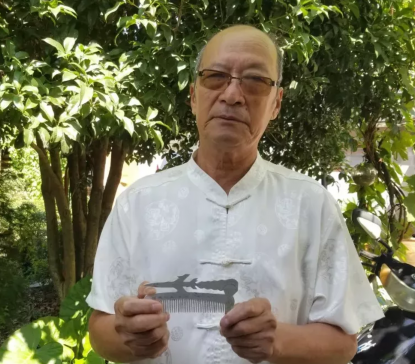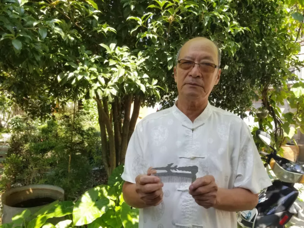 “梳子上的图案是美军F105轻型轰炸机,飞机机尾冒着浓烟,代表着我们击落了这架飞机。飞机的尾部还有一个跳伞逃生的美国空军飞行员。”提起这段往事,倪昌茂依然很激动。