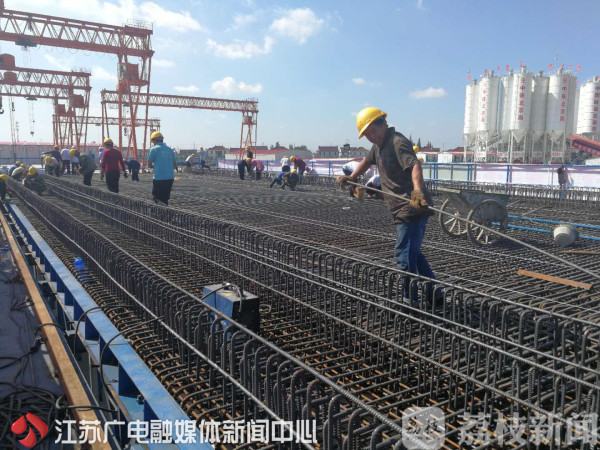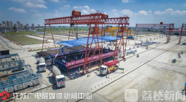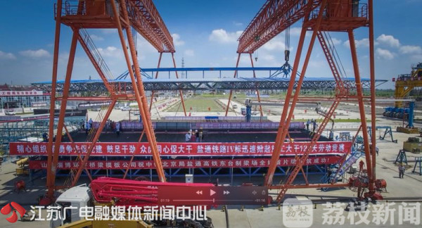 今天(8月30日),盐城至南通铁路在东台制梁场浇筑全线第一榀新型箱梁,这在我国高铁建设中首次使用。