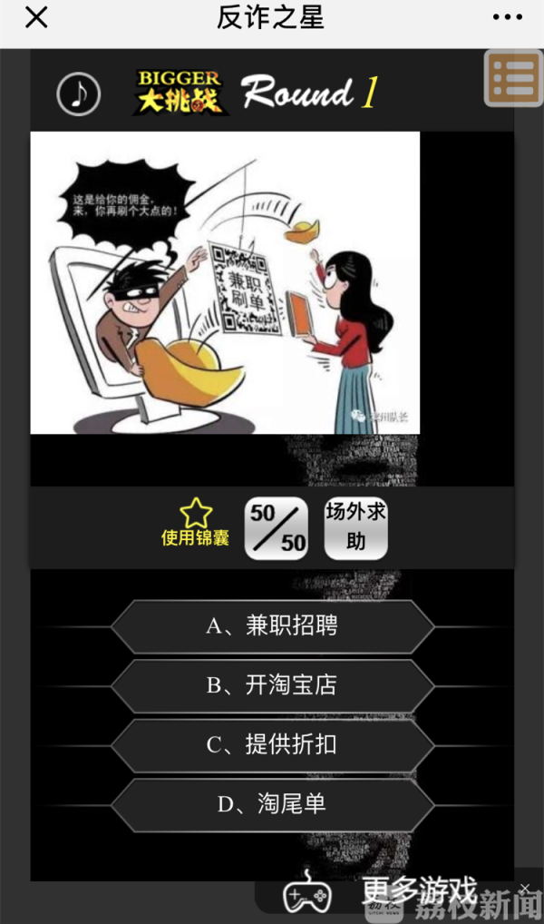 记者注意到,这款游戏每一关都有一种骗局在等着你,闯关失败后,页面会自动跳出此类诈骗手法及防范知识,让大家在娱乐中学习到各类防范知识。