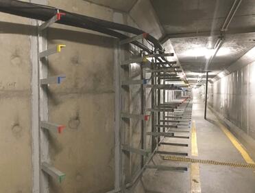 记者近日探访了已建成并试运营的江北新区地下综合管廊一期工程,坐标地下6米,体感凉爽,“隧道”两端一眼看不到头,隔壁还有一个“隧道”,这就是所谓“双舱”的设计。只见廊架上有序摆放着各种粗细不一的管线和管道,管廊空间既能供多人同时通过,也可以让小型检修车辆通行。中铁十七局集团南京管廊总承包指挥部工程师马宁告诉扬子晚报记者:“这里有4种管线,包括自来水、空调、联合通信和强电。附近雅居乐小区的强电也接进来了。”