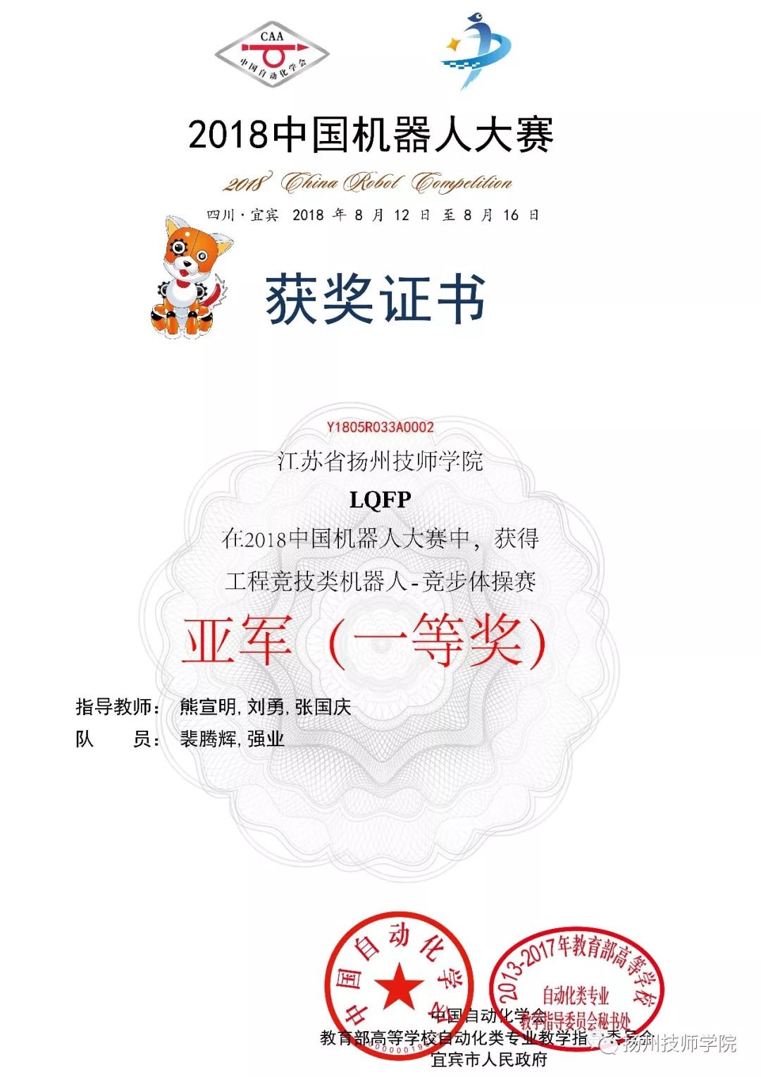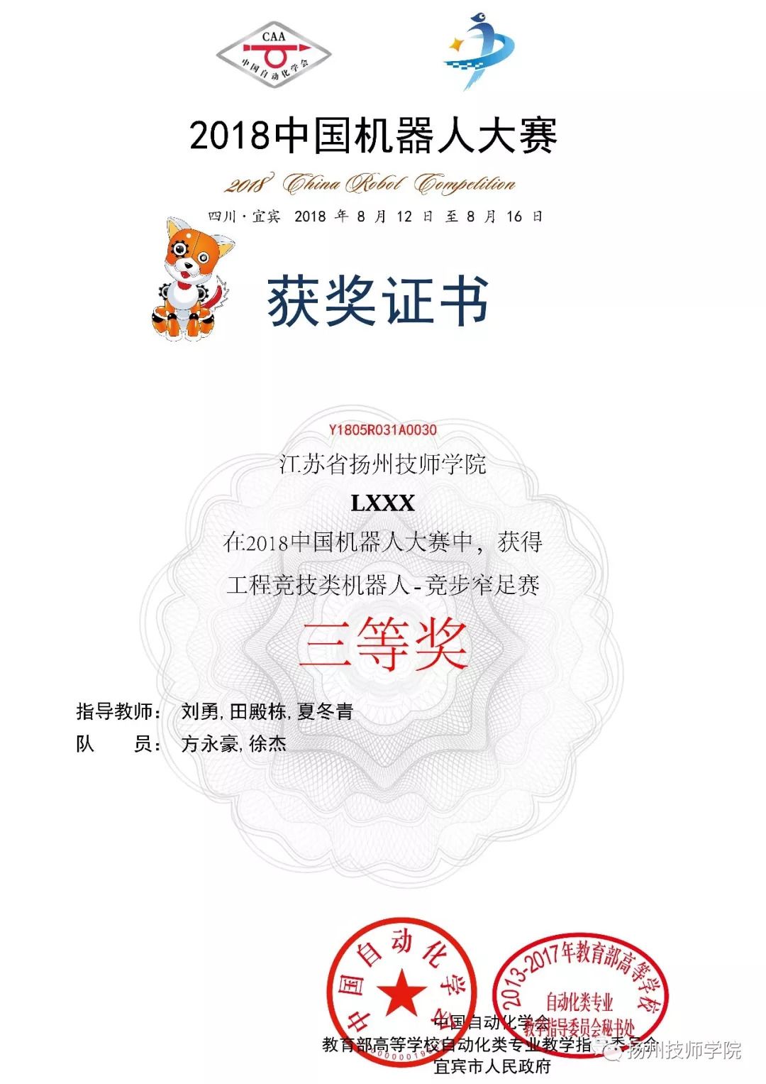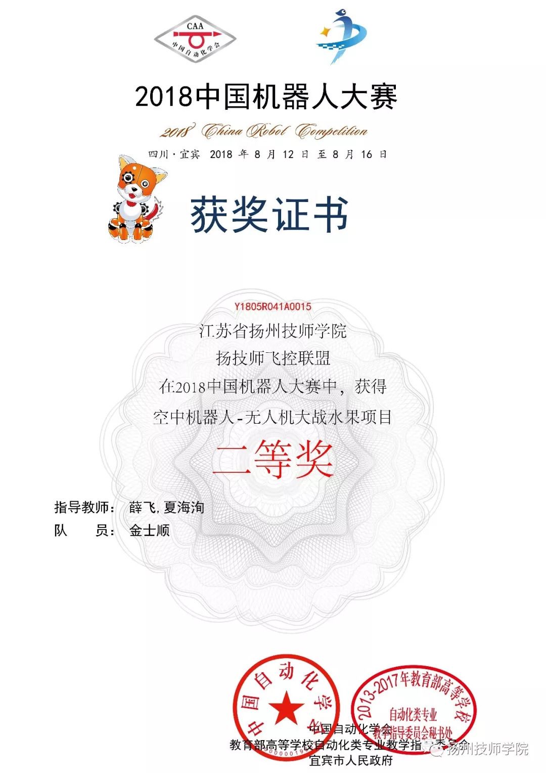 中国机器人大赛是我国最具影响力、最权威机器人技术大赛、学术大会和科普盛会,是中国智能制造技术和高端人才的重大交流活动。本次比赛由中国自动化学会、宜宾市人民政府共同主办,教育部高等学校自动化专业教学指导委员会协办。中国机器人大赛为大学生提供了充分展示自我的机会,通过参赛,学生的团队协作能力、自我表达能力及创新能力都得到了全面提升。