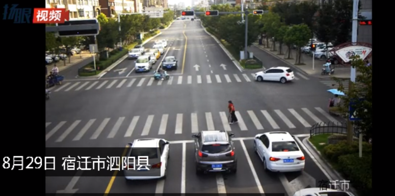 记者从泗阳交警部门了解到,网友拍下的暖心一幕发生在8月29日9时6分左右,地点在泗阳县众兴镇长春路与桃源路交叉的十字路口。警方提供的路口高清监控视频显示:一个身穿红色上衣拄着双拐的女子正准备过马路,此时南来北往的车辆很多,斑马线上只有女子一人,一步一步的挪动着前行,身体还伴随着微微的颤抖。