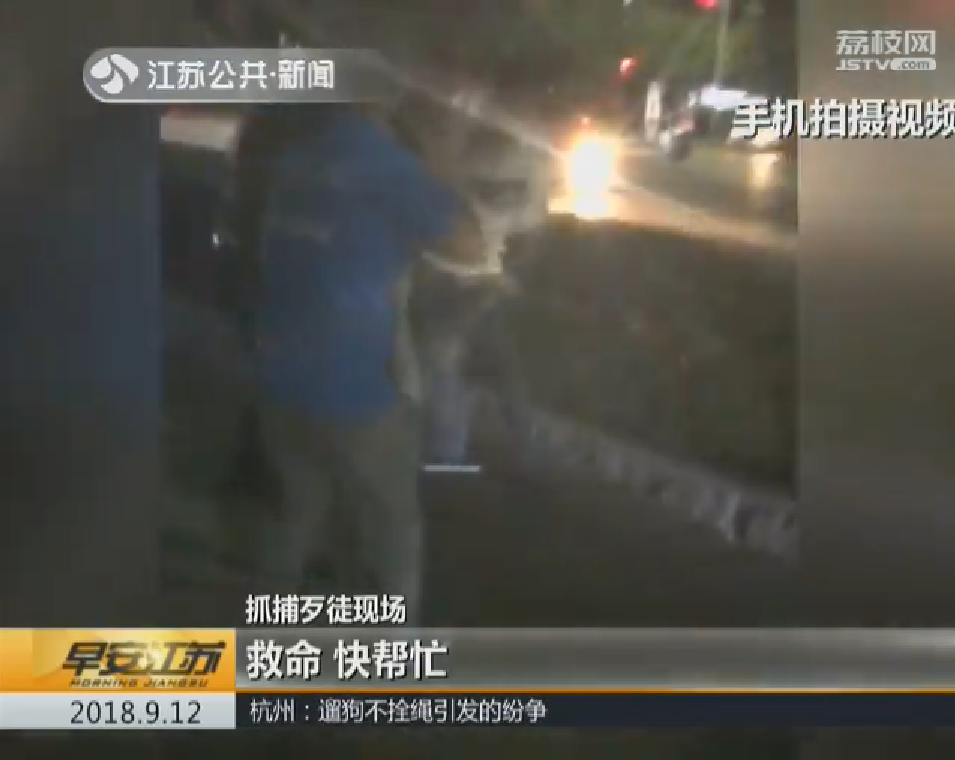 9月9日晚,徐州两位外卖小哥刚送完单,听见一名带孩子的女子喊“抢劫,他有刀,救命!”。两位外卖小哥和路过的热心市民立刻冲上去,交警赵士勇也刚好下班路过,一起合力制服歹徒。随后增援民警赶到,将男子控制。