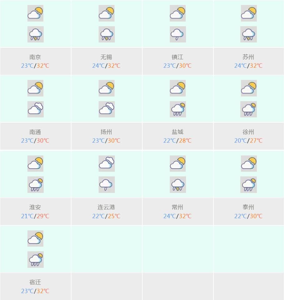 温度最高的溧阳(31.8℃)和最低的连云港市区和东海(23.6℃)