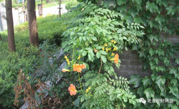 这里环境幽静,景色宜人,一年四季皆有绿色,鲜花常开,幽香暗送,蝉鸣聒噪,草木葱茏,凌霄花妖妖娆娆的攀附,恣意的开放着,来此游人小憩片刻,如同置身画中。