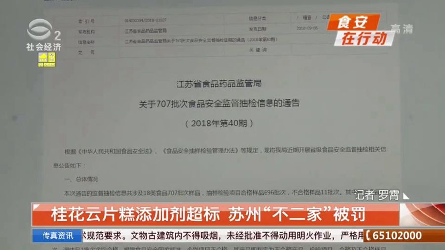 最近,江苏省食药监局在官网上发布了今年的第40期食品安全监督抽检信息。苏州的一家食品厂生产的桂花云片糕,有一批次被检出被合格。