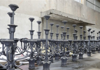 大桥开始大修后,每根至少重约 700 公斤的玉兰花灯,就被一一编号,记录下了原有的安装位置,随后被拆解成路灯杆、基座、灯架等部分,运送到这里的仓库进行 " 体检 " 和 " 疗伤 "。待修缮后,每根编号的路灯都会被原位安装。