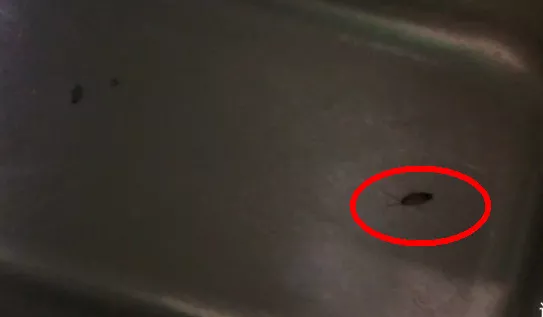 拿起一个经过清洗的不锈钢桶,里面竟然还有一只活的蟑螂。