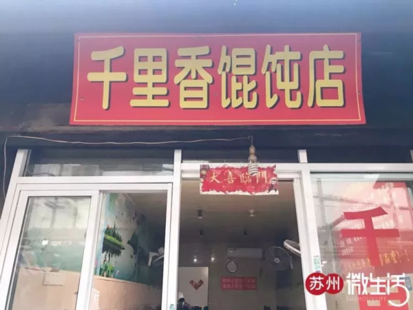 千里香馄饨在靠近葑门横街西门的位置,门口就有阿姨在那边包馄饨,可以买了带回家吃,也可以在店里吃。