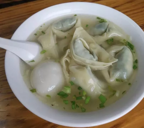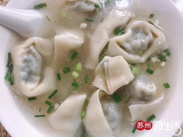 这家汤团店最受欢迎的就是鲜肉的,个头很大,咬一口,汁水就迫不及待的溢出来,很是鲜美,外皮也是一抿就开的软糯。再来上一碗小馄饨,老苏州的标配。