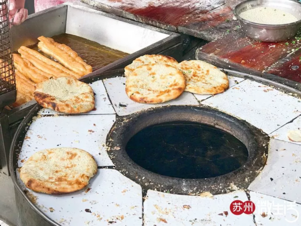 烧饼有甜咸之分,而且每个个头都很大,酥酥脆脆的,外面还有芝麻,咬一口感觉超级无敌好吃。