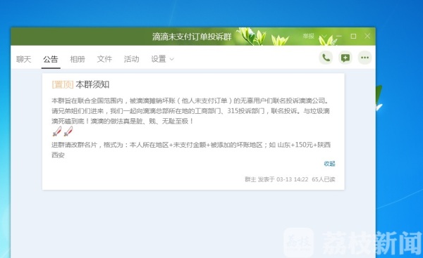 然而南先生却表示,他并没有客服所说的类似情况。在网上"滴滴未支付订单投诉群"的QQ群里,和南先生有着类似遭遇的不在少数。有用户人在长春,却被提示有福州的滴滴未支付订单;有用户人在成都,却出现了一个在南京的滴滴未支付订单。