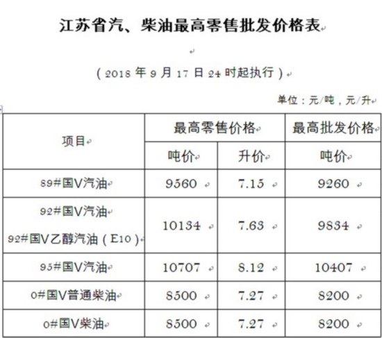 油价两连涨即将兑现!9月17日,江苏省物价局根据国家发展改革委关于国内成品油价格调整公告,于9月18日0时上调成品油价格。根据成品油价格调整机制,汽、柴油(标准品)供应价格每吨均上调 145 元,92 号国 V 汽油每升上调 0.12 元。此次调价后,江苏92号汽油涨至7.63 元 / 升,按照汽车油箱 50 升来计算,车主加满一箱油要比调价前多花 6 元。中秋假期将至,不少人打算期自驾出游,油价上涨让车主出行成本有所增加。