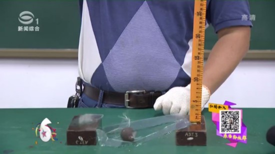 不过贴成米字,真的抗击力会增强吗?我们也做了一个实验。统一使用132g的小铁球来砸击3毫米厚的玻璃。首先是光面的普通玻璃,达到25厘米高的情况下,玻璃被砸碎。再用胶带贴成米字型。没有想到在25厘米高度的时候,同样也碎裂了。而我们把玻璃用胶带竖条形贴满以后,在这一次的实验中,直到30厘米才碎裂。