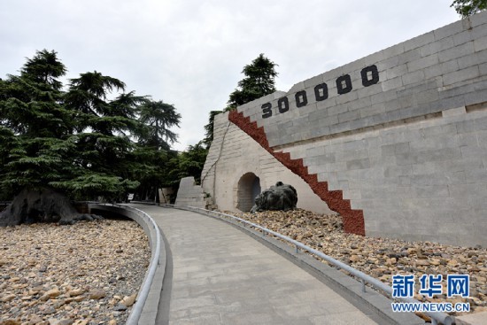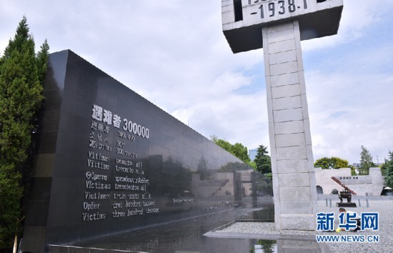 每年12月13日,悼念南京大屠杀遇难同胞仪式都会在集会广场上一面巨大的黑色花岗石墙前举行,人们形象地称它为“灾难之墙”。来自福建惠安,经过浩瀚大海无数次冲刷洗礼过的花岗岩墙,如同一面巨大的墓碑,此刻静静地矗立在平静的水面上,墙体上用中、英、日等12国文字共同镌刻的“遇难者300000”的字眼或大或小、或远或近……当凄厉的警报声、低回的哀乐融入冰冷的墙体中时,人们的心灵仿佛被撞击。