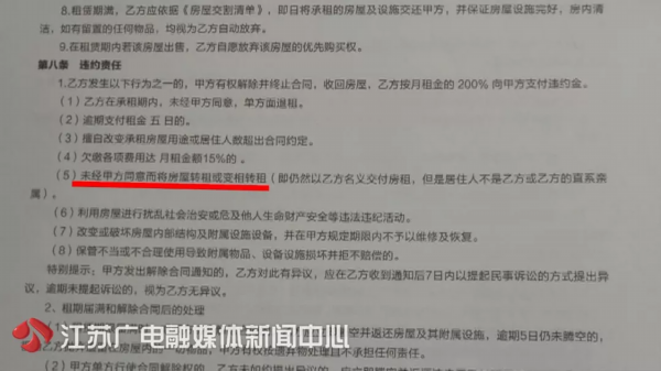 “我爱我家”秦虹店的一名负责人称,合同中确实有禁止转租的约定,并且他们也熟知这些规则,目前该事件由总公司负责处理。