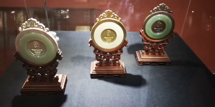 刚开始,用玉制作奖牌得到奥组委的反对,玉虽说是中国文化的象征,但是奥组委还是希望进行原有的奖牌设计体系,用单一的金银铜制作。协商后,张铁成把每种玉料都制出样品,几十个玉环经过反复调换比对,最后敲定了不同奖牌的玉石搭配方案:金牌选用白玉突出纯洁高贵,银牌更适合青白玉,色彩交相辉映,铜牌选用青玉,显得华贵大方。