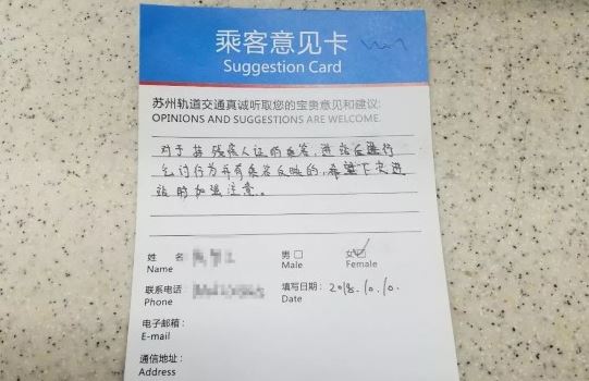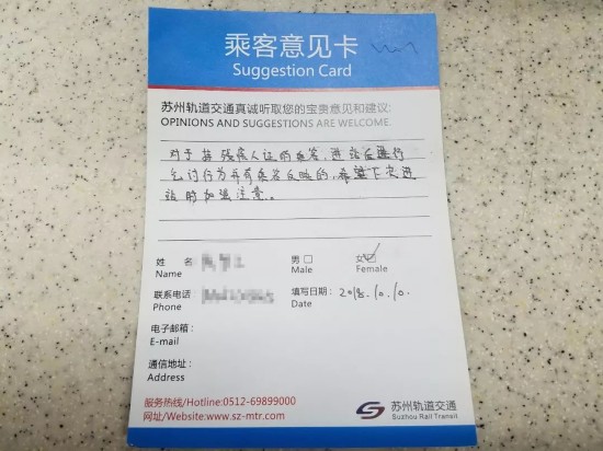 另外对于网友提出的:建议对于持“残疾证”的乘客如果进站后有乞讨行为的,将此人信息公示至各个站点服务台,对于有过“案底”的乘客,客服人员需在其下次进站时加强注意!朱站长也表示会将乘客意见卡上交给相关部门。