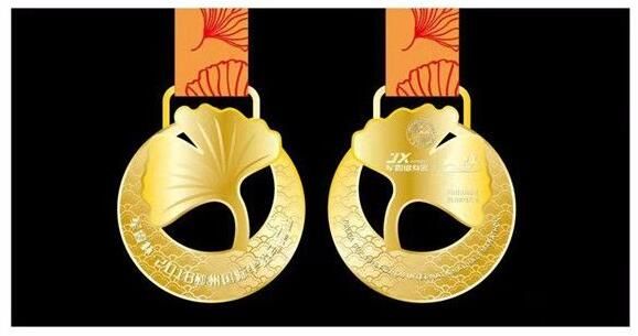 两款奖牌均采用镂空设计,以银杏叶作为奖牌主体,寓意金色华年,奖牌中心是一片银杏叶子在风中摇摆的图案,象征金秋十月,一年一度金色之旅。奖牌外环以祥云作为点缀,寓意福瑞吉祥,赛事圆满,同时朵朵小祥云也象征着一位位马拉松选手,在飘舞的银杏叶之下,全民出发,畅跑邳州。