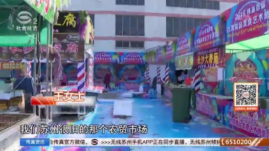 王女士说,就像那个农贸市场,很脏很破的一个地方,里面搭了一个简易的棚,里面有卖烧烤的,就是挂了几个塑料花,就这样挂在绳上面。