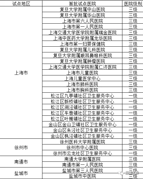 上海市和江苏省首批试点医院具体如下: