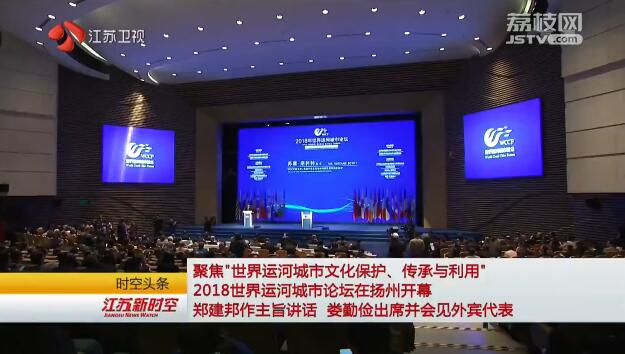 江苏大运河文化带建设迎来世界关注的目光。10月12日,由世界运河历史文化城市合作组织WCCO、中国太平洋经济合作全国委员会主办的2018世界运河城市论坛在运河名城扬州开幕。全国政协副主席、民革中央常务副主席郑建邦作主旨讲话并宣布论坛开幕。全国政协原副主席、中国宋庆龄基金会主席王家瑞,省委书记、省大运河文化带建设工作领导小组组长娄勤俭,WCCO名誉主席、爱尔兰前总理布莱恩·考恩出席论坛。