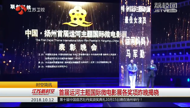 10月11日晚,中国·扬州首届运河主题国际微电影展表彰晚会在扬州大剧院举行,最佳男女演员、最佳编剧、最佳海外影片等12个奖项各归其主。本次微电影展是"保护好、传承好、利用好"大运河历史文化资源进程中"中国行动、江苏实践、扬州案例"的最新探索。(江苏广电融媒体新闻中心记者/毕然 沈杨 曹鹏 李栋)