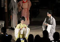 在今晚一个小时的演出中,昆曲演员们在园林实景中,将沈复与芸娘夫妇人文相恋、志趣相投、柴米相依的深情演绎得淋漓尽致。一开场,王二和俞六两位仙人自假山而来,准备度化凡人,随即引出男主人公沈复。随后,观众在王二和俞六的引领下,前往沧浪亭不同角落,“浸入”沈复和芸娘的一生。面水轩、闻妙香室、明道堂、沧浪亭、“流玉”石刻旁,沈复与芸娘演绎着他们的春夏秋冬又一春,整场演出也因此被分为“春盏”“夏灯”“秋兴”“冬雪”和“春再”五折。“现场表演很细腻,展现出一种人文情怀,让我感受到了昆曲与园林相融合的独特意蕴。”现场,观众杨先生边说边不停地用手机拍着照片。来自台湾的蔡女士表示,将世界文化遗产沧浪亭与世界非物质文化遗产昆曲结合起来,是一个非常有创意的尝试,创造出了更多的文化价值,真正让人体会到了经典文化的魅力。