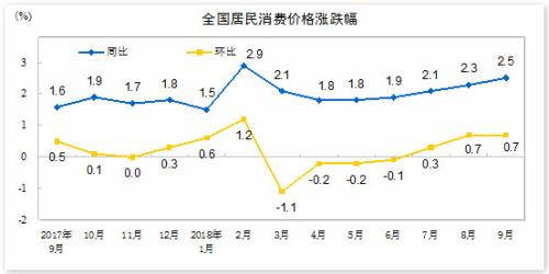 受季节、天气、“双节”等因素影响,9月份CPI同比涨幅达到2.5%,涨幅比上月扩大0.2个百分点,涨幅连续三个月处“2时代”。