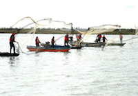 上午 8 点,在阜宁金沙湖上,举行了传统的祭祀仪式,寓意着来年风调雨顺。9 点,简短的开幕式后,湖上捕鱼和水上竞技表演正式开始,随着渔民们的一声声号子,只见多艘渔船向湖中间进发,现场除了撒网和拖网捕鱼外,还有小船鸬鹚捕鱼,吸引了不少游客拍照围观。