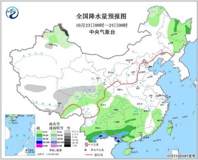 除降温外,这轮冷空气还将带来降水。25日夜间至27日,东北地区南部有中到大雨,新疆北部、内蒙古东北部、东北地区中北部有雨夹雪或雪,其中内蒙古东北部和黑龙江西北部局地有大到暴雪。