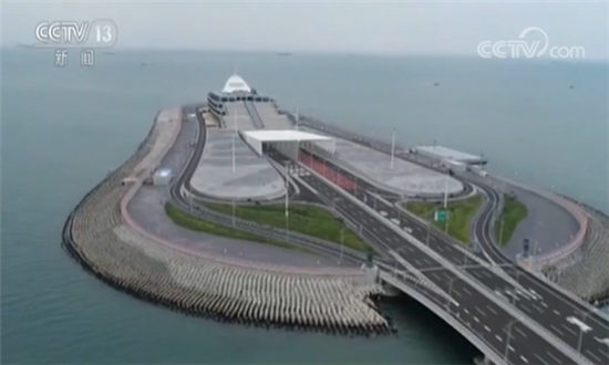 过“中国结”往东,就是西人工岛,岛长625米,面积10.17万平方米,承担大桥救援、养护等功能。
