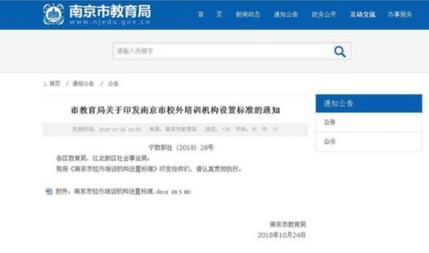 10月24日,南京市教育局最新发布《南京市校外培训机构设置标准》(以下简称《标准》),再次明确了校外培训机构的审批制度、收费管理等等方面。