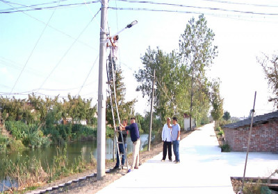 经过一个多星期的调试,二十几盏路灯安装完成,原本黑漆漆的村间小道亮了起来。