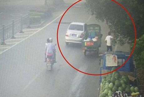 事发当天,黄大爷骑着三轮车正常行驶,到路口右拐之后,身后的自行车突然加速追了上来,另一旁的汽车也在往黄大爷这边别车。