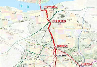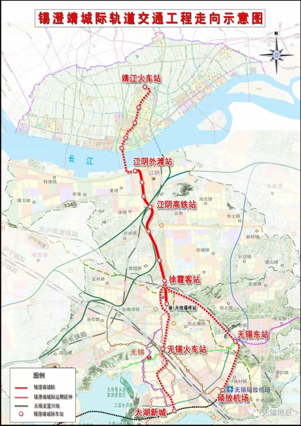 锡澄靖城际轨道交通工程走向示意图