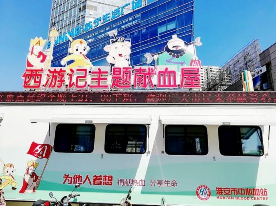 无偿献血公益事业是社会文明素质的重要表现,因此在献血房车的升级创建过程中,市中心血站创新思路,将淮安的文化特质融入到无偿献血公益事业中,面向社会广泛征集献血房车的命名和改造方案,在淮安市民中引起强烈反响,掀起了一股关注无偿献血的热潮。2017年1月,根据市民的推荐,“西游记主题献血房车”正式命名并在淮海广场亮相。目前,西游记主题献血房车面积40平方米,服务人群达8000人次/年。